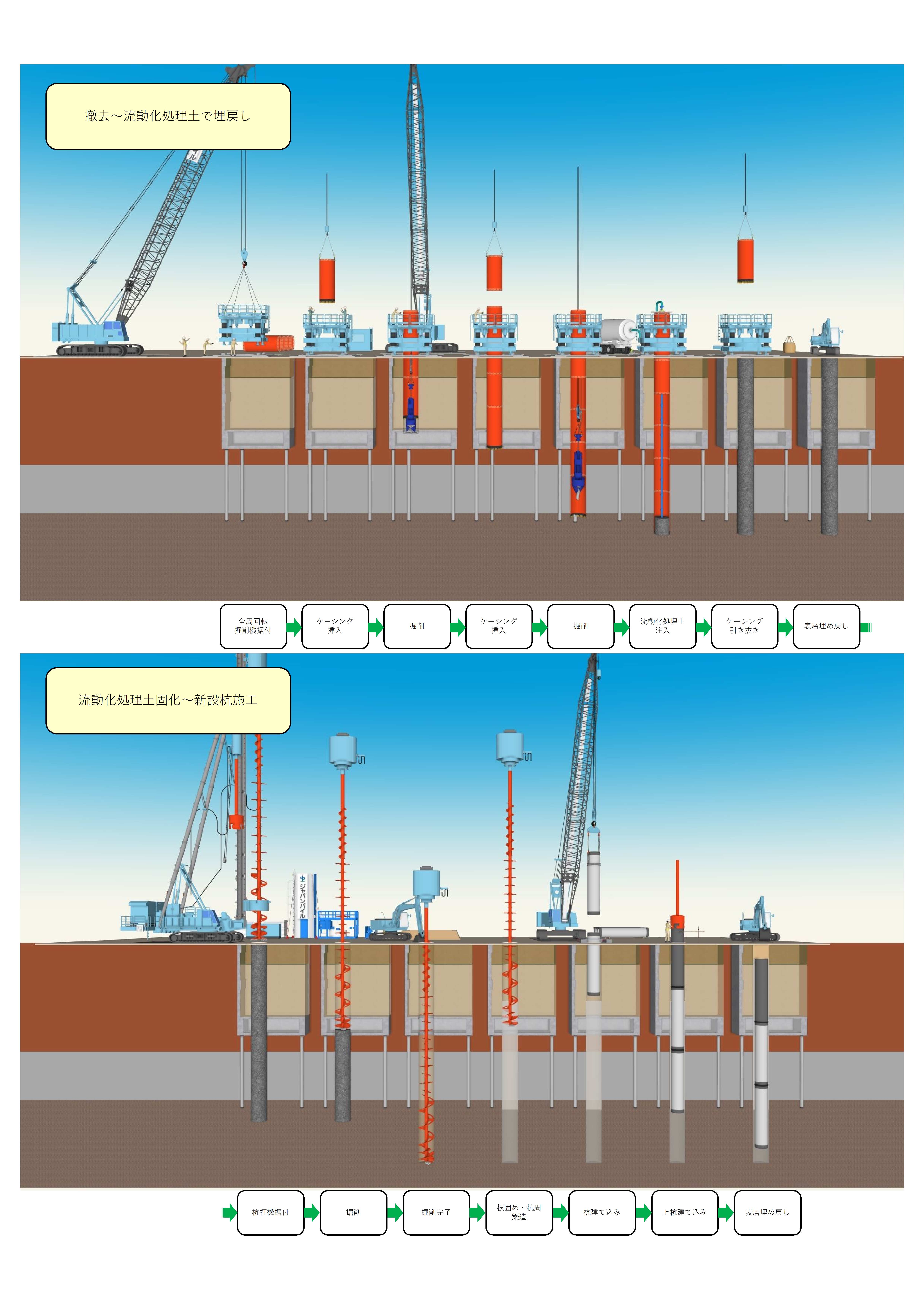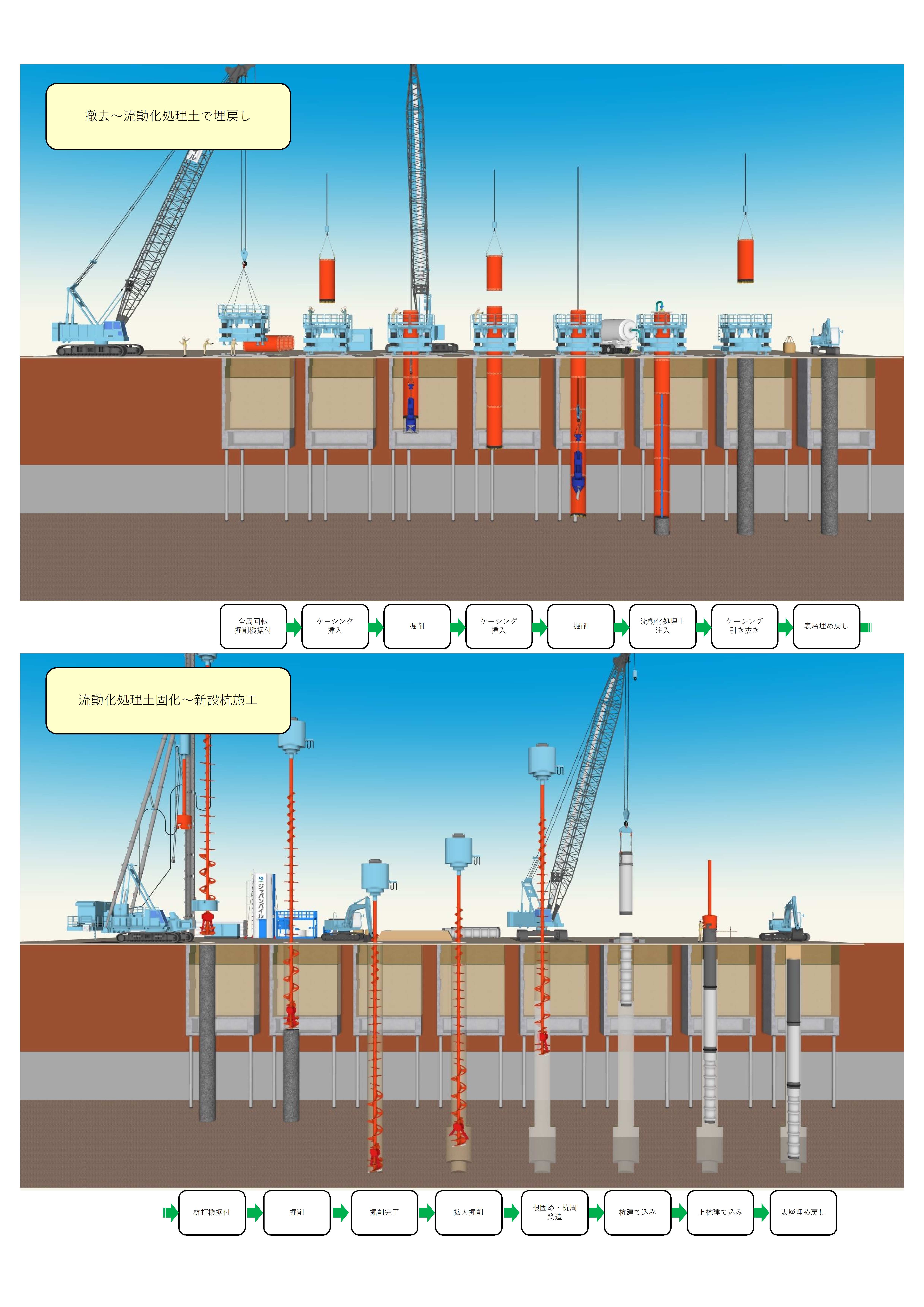 Newマルチ工法(地中障害撤去→場所打ち杭施工)